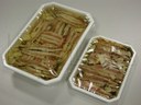 Krążki kałamarnicy pakowane na tacce na poziomej maszynie pakującej (HFFS).